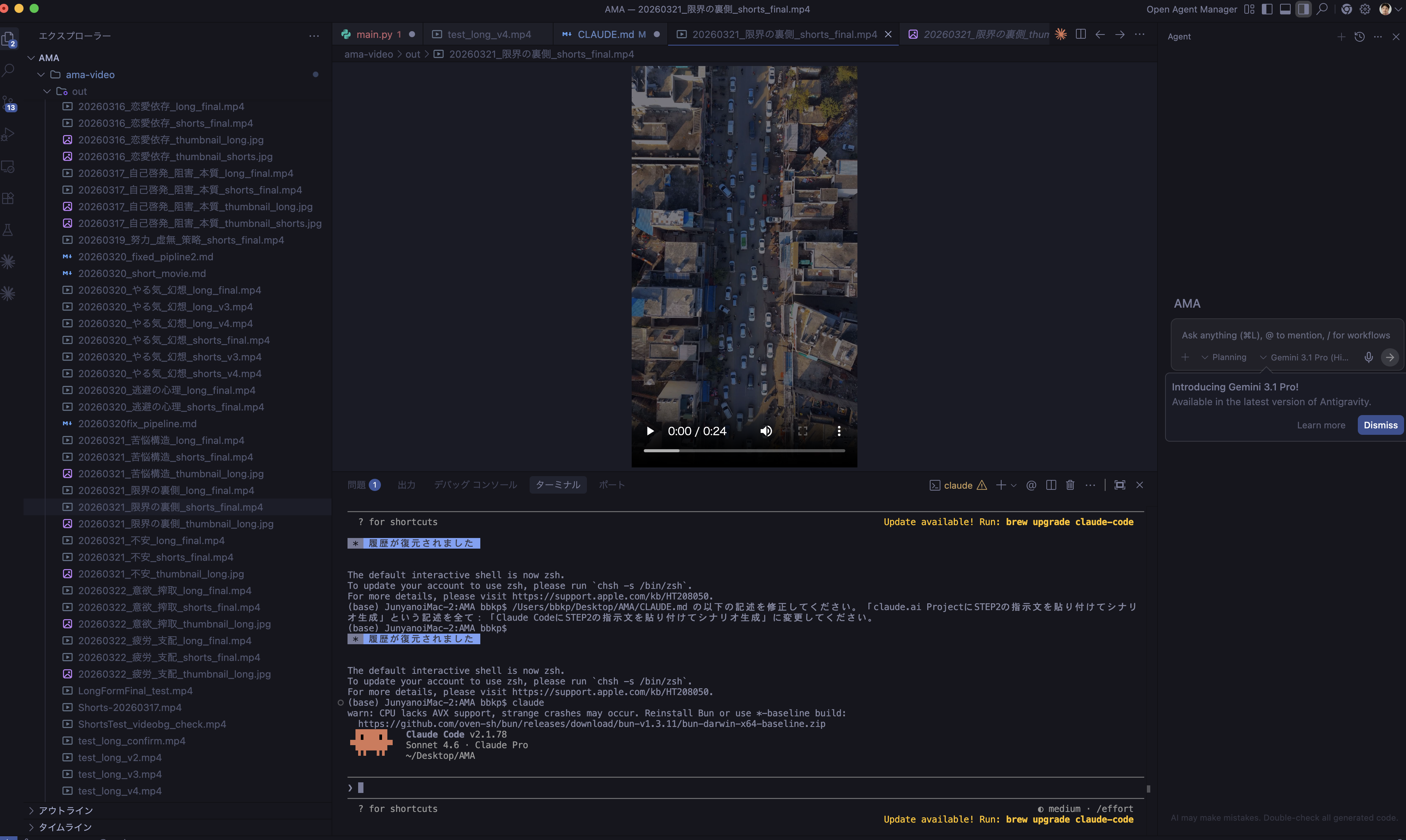 判断構造が確定した後、初めて技術の実装が始まる。Claude CodeによるVibe Codingで、複数のAPIを統合したパイプラインを構築した。Google AntigravityとClaude Codeによるvibe Coding.